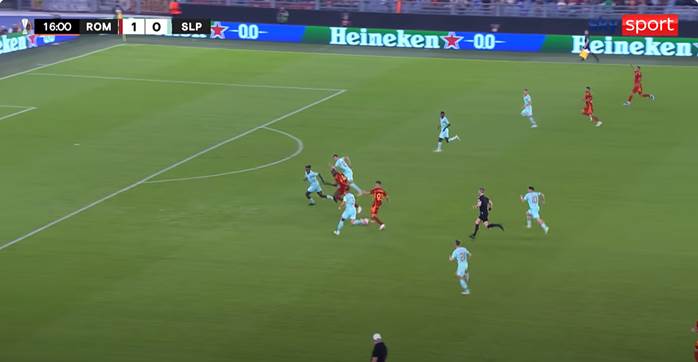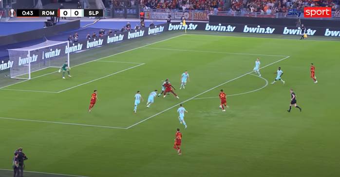 Lo trova invece con il suo diretto marcatore che gli restituisce involontariamente il pallone.